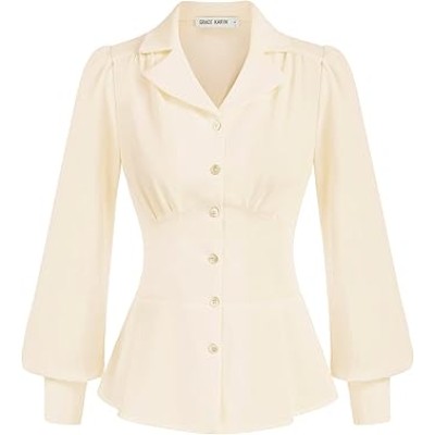 Button Down Shirts for Women Summer Peplum Tops Long Sleeve Work Blouse Collared Shirt Dressy Top
