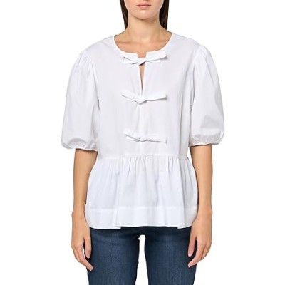 Women's Short Sleeve Poplin Peplum Tie Front Top