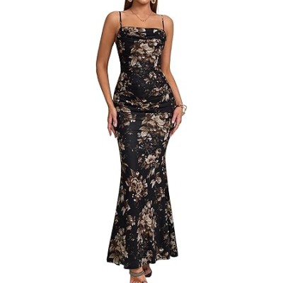 Women's Sleeveless Bodycon Corset Maxi Dress Spaghetti Strap Ruched Elegant Evening Wedding Guest Long Formal Dresses