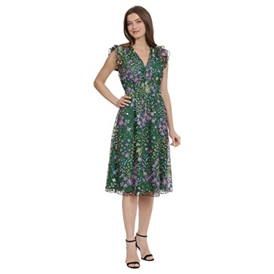 Women's V-Neck Garden Floral Embroidered Dress Colorful Feminine Party Event Occasion Guest of