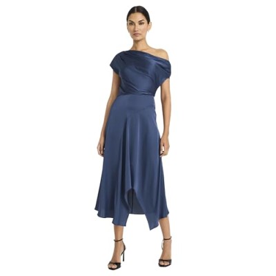 Women's Midi Dress W/Asymmetrical Neck & Hemline