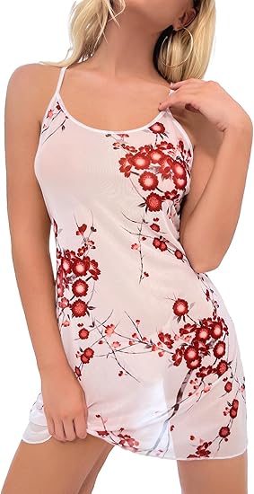 Women's Mesh Floral Cami Nightgown Sleeveless Cross Backless Sleepwear Night Dress Nightwear