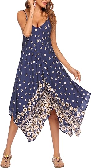 Women's 2024 Summer Dress Casual Boho Sundress Spaghetti Strap Swimwear Cover Up Beach Flowy Midi Vacation Dresses