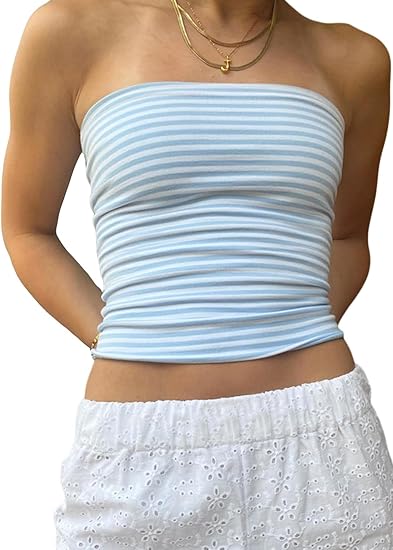 Strapless Going Out Tops for Women Colorful Floral Striped Print Tube Crop Top Backless Y2k Corset Bandeau Bra Tops