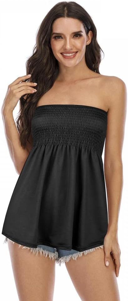 Women's Strapless Sleeveless Tube Tops Pleated Stretch Tunic Tanks Summer Blouse Cami Shirt
