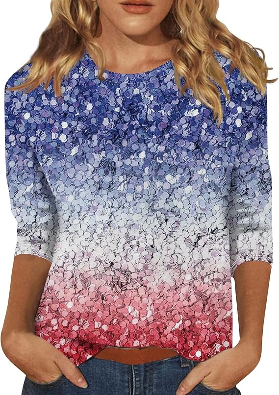 Womens Shirts Dressy Casual,Women's Fashion Casual Round Neck Three Quarter Sleeve Printed T-Shirt Top