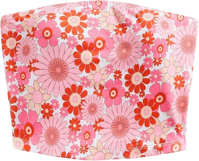 Women's Strapless Floral Print Slim Fit Summer Bandeau Crop Tops
