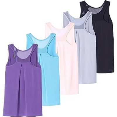 5 Pack: Women's Racerback Workout Tank Top Mesh Back Dry-Fit Sleeveless Running Gym (Available in Plus Size)