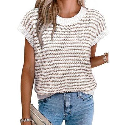Women's Sweater Vest Striped Pullover Tank Top Round Neck Cap Sleeve Lightweight 2025 Summer Casual Clothes