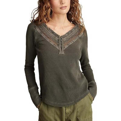 Women's Embroidered Mesh Yoke Henley