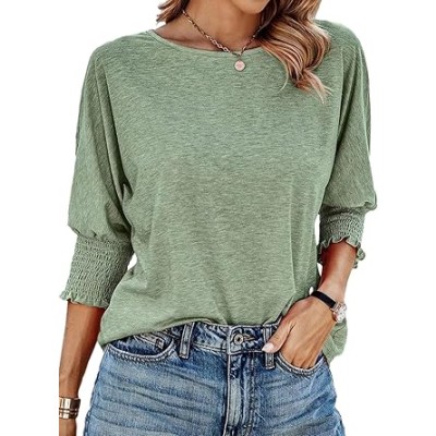Women's 2025 Fashion Tops 3/4 Sleeve T-Shirts Cute Crewneck Basic Business Tees Blouses