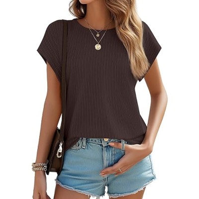 Summer Tops for Women 2025 Trendy Cap Sleeve Crewneck T Shirts Textured Business Casual Outfits Blouses