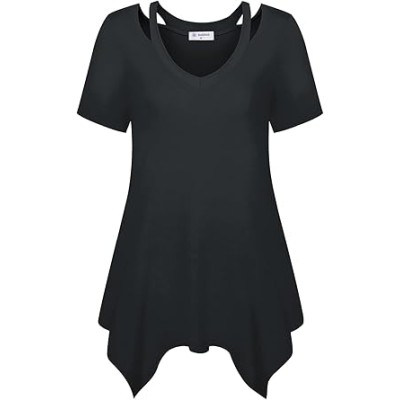 Womens Short Sleeve Tunic Tops Cut Out V Neck Dressy Casual Loose Fit Long Tops