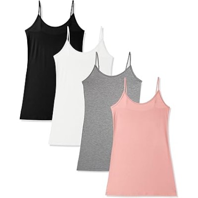 Women's Basic Camisole Tank Top with Adjustable Spaghetti Strap Cute Undershirt 3/4 Pack