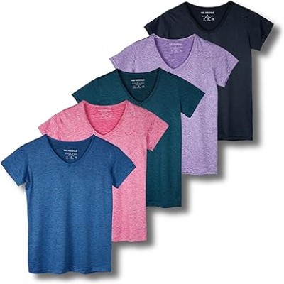 5 Pack: Women's Short Sleeve V-Neck Activewear T-Shirt Dry-Fit Wicking Yoga Top (Available in Plus)
