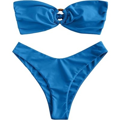Women's Bandeau Bikini O Ring Strapless Tie Back High Cut Two Piece Swimsuit Bathing Suits
