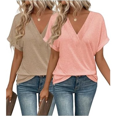 2PCS T Shirts Short Sleeve V Neck Tees Womens Fashion Tops Trendy Soft 2025 Casual Summer Spring Outfits Clothes