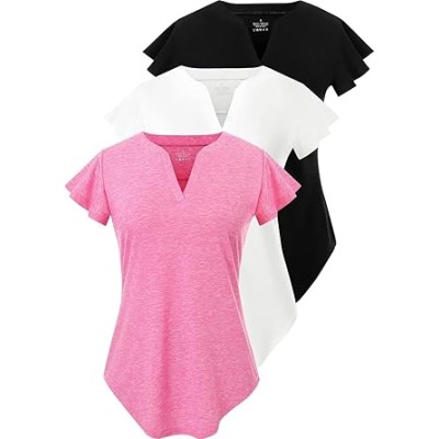 3 Pack Women's V-Neck T-Shirts Short Sleeve Summer Tops Casual Ruffle Sleeve Tee Shirt Slim Fit Blouses