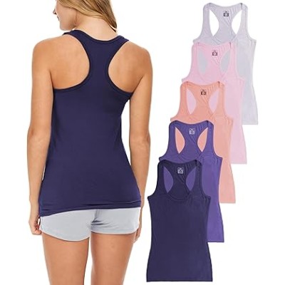 Women's 5 Pack Racerback PowerFlex Tank Tops/Cotton -Spandex Stretch Color Tank Tops
