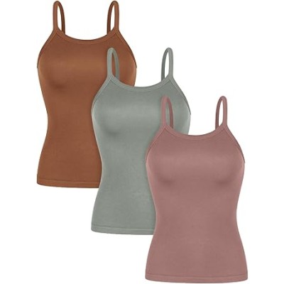 Seamless Tank for Women Ribbed Strappy Sleeveless Shirts Scoop Neck Cami Tops