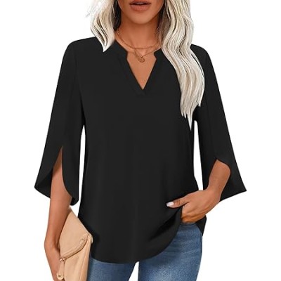 Womens 3/4 Length Sleeve Tops Summer Dressy Business Casual Blouses Work Shirts Chiffon V Neck Outfits 2025