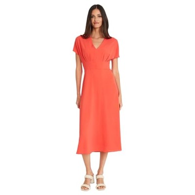 Versatile V-Neck Short Sleeve A-line Midi Wedding Guest Dresses for Women