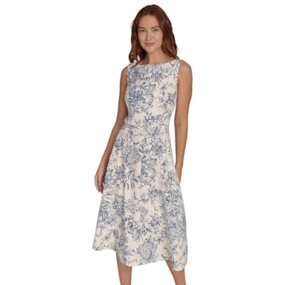 Women's Sleeveless Boat Neck Fit & Flare Midi Dress
