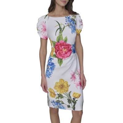 Women's Short Ruched Sleeve Jewel Neck Sheath Mini Dress