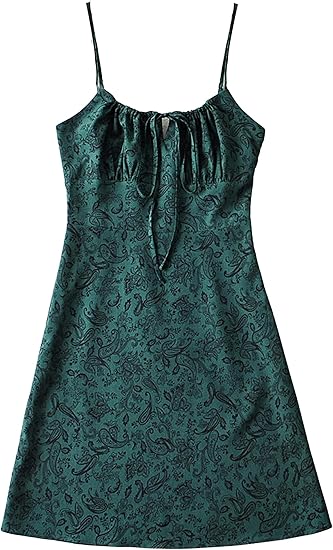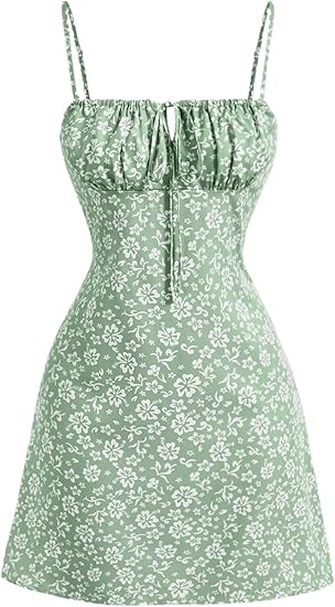 Women's Floral Mini Cami Dress Ruched Tie Front Spaghetti Strap Short Strappy Dresses