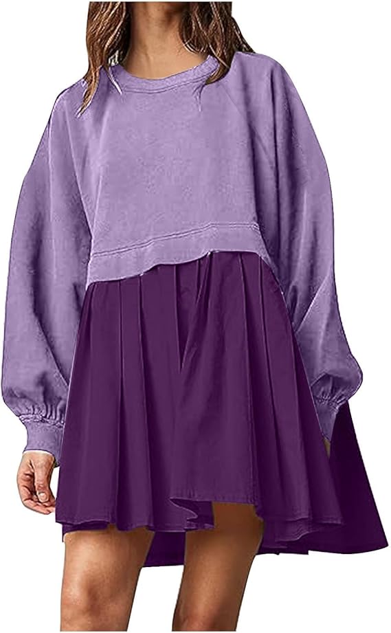 Women Casual Tunic Dress V Neck Tiered Dress Long Sleeve Fit Swing Shift Dress with Pockets Loose Ruffled Dresses