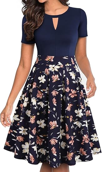 Women's Vintage Floral Flared A-Line Swing Casual Party Dresses with Pockets