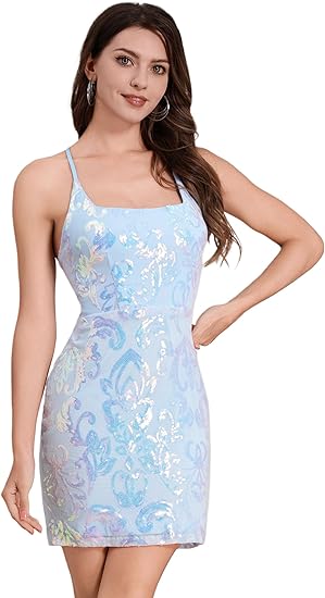 Women's Spaghetti Straps Sparkly Sequins Bodycon Mini Dress Party Nightclub