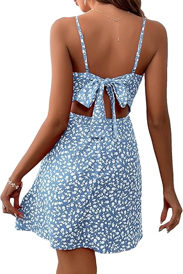 Women's Ditsy Floral Cami Dress Bow Knot A Line Mini Sundress