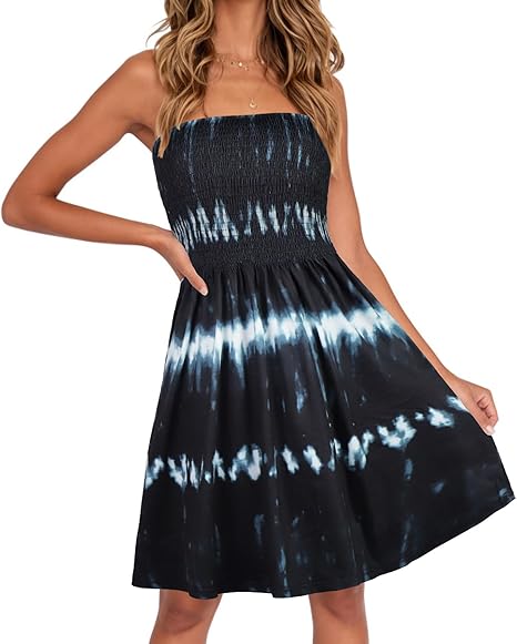 Summer Dress for Women Beach Boho Strapless Cover Ups Off Shoulder Floral Sundresses