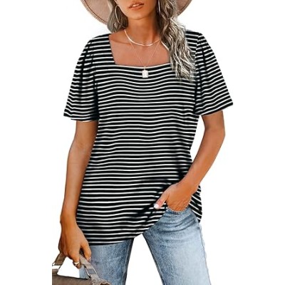 Womens Summer Tops Casual Square Neck Puff Short Sleeve T Shirts